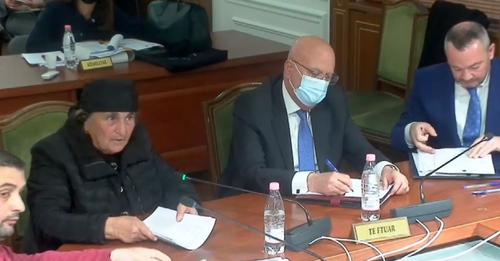 Nënë Liza së bashku me një grup banorësh të “5 Majit” në lagjen ku u shembën banesat, ndodhen në Komisionin e Ligjeve dhe po flasin për shqetësimet e tyre.