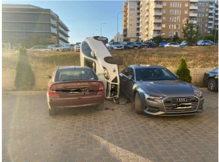 Një veturë “Ford” ka rrëshqitur dhe ka rënë në parkingun e Viva Fresh dhe ka përfunduar ndërmjet dy veturave, duke iu shkaktuar dëme të vogla materiale.