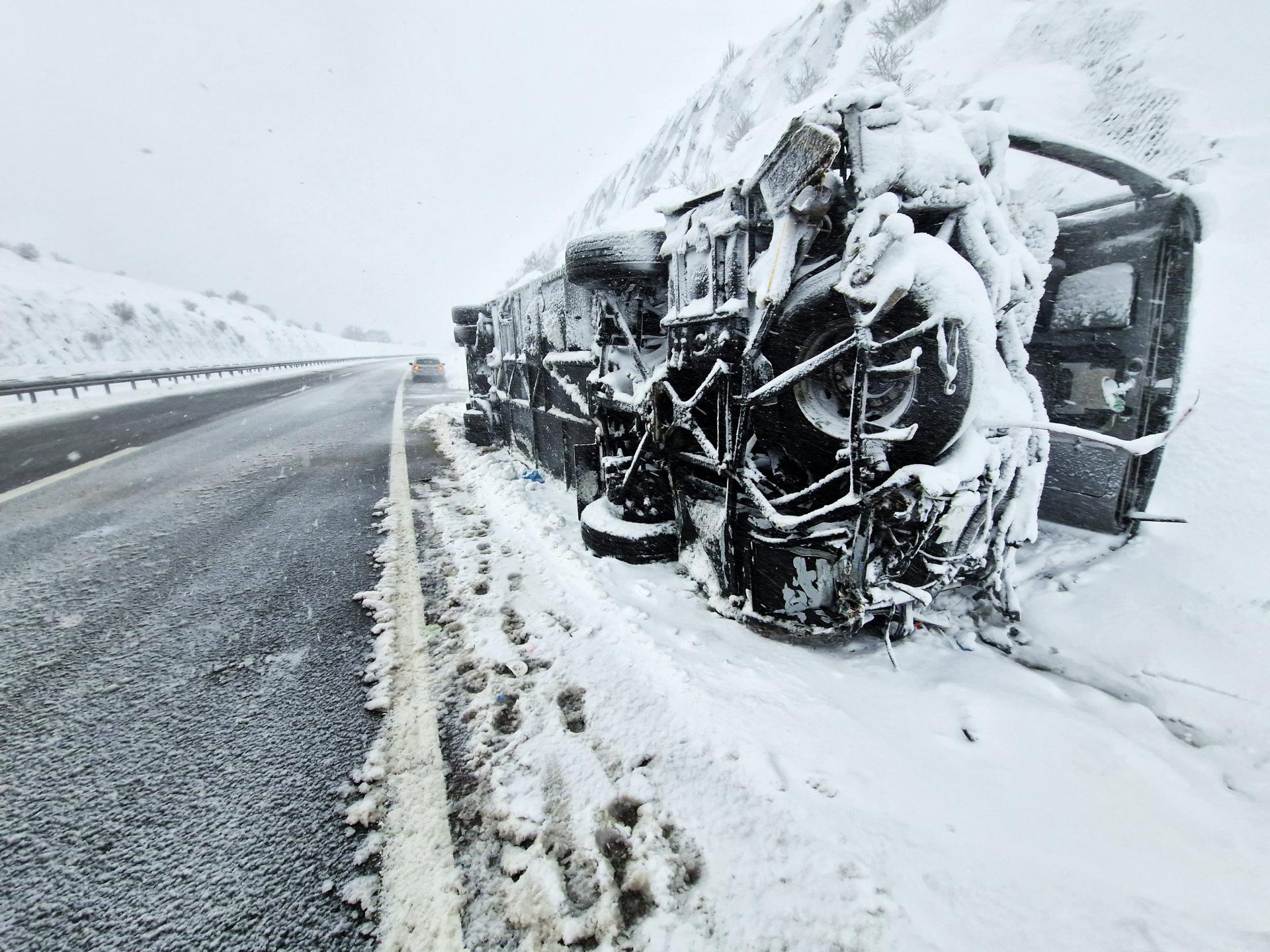 Sipas mediave tw huaja, shoferi i autobusit humbi kontrollin për shkak të dëborës në rrugë dhe u përplas me një barrierë anësore. Nga aksidenti një pasagjer humbi jetën ndërsa 8 të tjerë mbetën të plagosur.