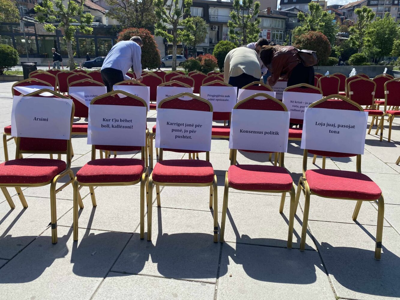 Disa nga mesazhet e vendosura në karriget simbolike ishin: “120 rroga, 0 përgjegjësi”, “Deri kur?”, “Cirku i demokracisë”, “Ky nuk është serial – është shteti ynë”, “Për çka ju kemi zgjedhur?”.