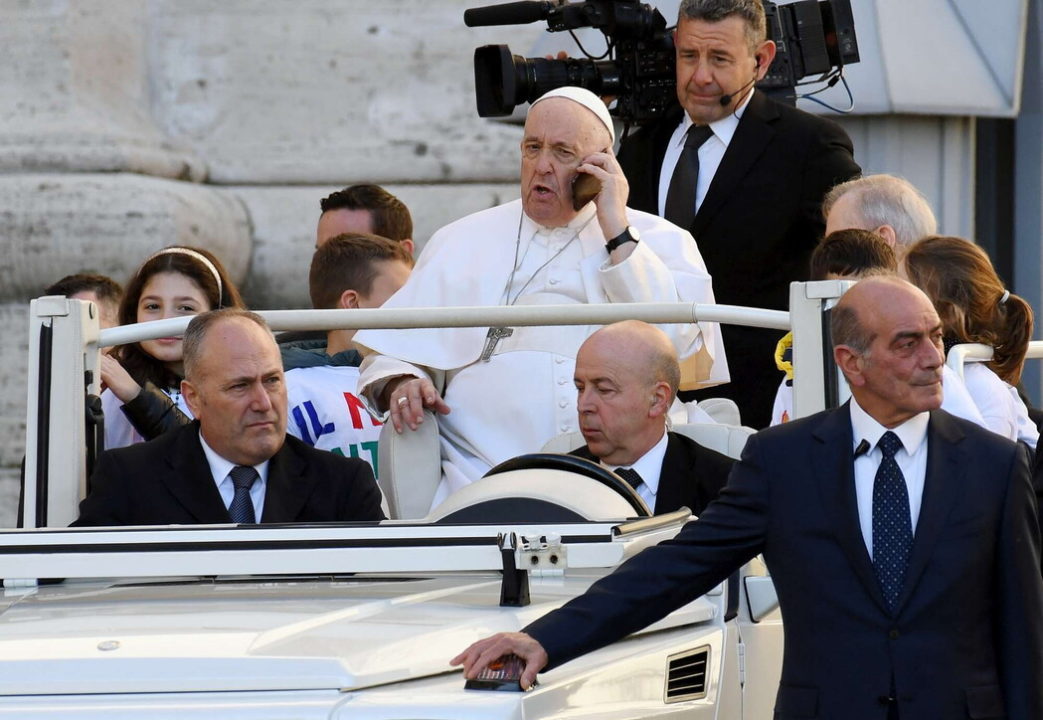 Teksa po mbërrinte në shesh me makinën papale, Ati i Shenjtë mori në telefonatë që e shoqëroi gjatë gjithë rrugës. Dhe sigurisht lindi pyetja: Me kë po fliste?