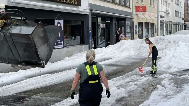 Edhe punonjësit e shërbimeve teknike pastrojnë rrugët me mëngë të shkurtra. Reutligen ndodhet jo shumë larg Stuttgartit në jugperëndim të Gjermanisë.