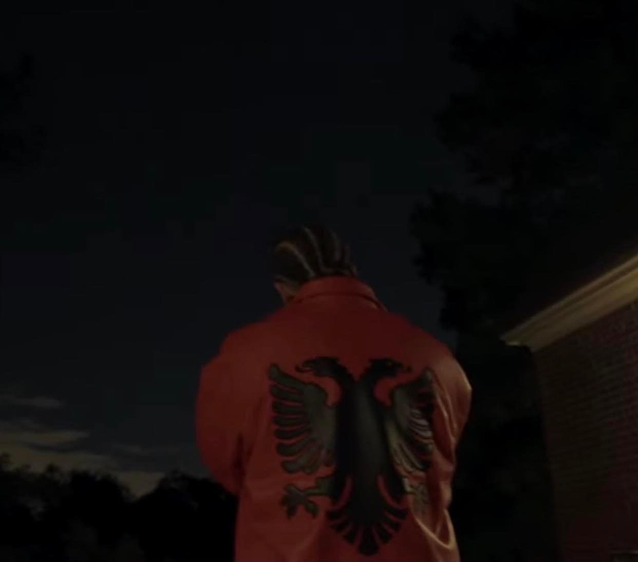 Drake shfaqet gjatë gjithë kohës i veshur me një xhaketë të kuqe, e cila në shpinë ka shqiponjën dy-krenare.