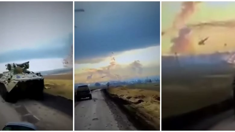 Një raketë e hedhur nga qielli, mbi ndërtesat e kryeqytetit Kiev, në