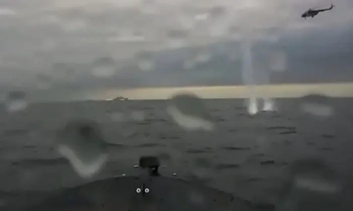 12Momenti kur një varkë-dron “kamikaze” gjarpëron mes predhave dhe sulmon anijet ruse