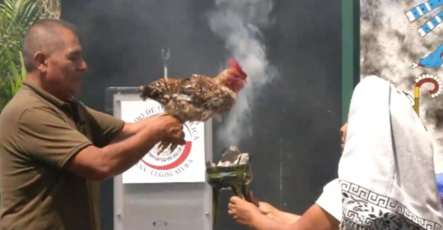E paimagjinueshme në Meksikë, një pulë bëhet kurban në Senat për t’iu lutur Zotit të shiut