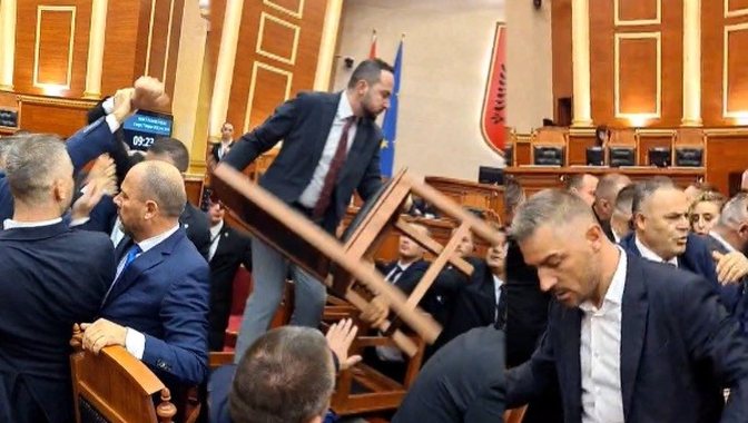 Në seancën e sotme në Kuvend pritet të kalojë nen për nen buxheti. Kjo situatë në sallën e Kuvendit po ndodh prej javësh, teksa përfaqësuesit e Partisë Demokratike vendosin karriget mbi njëra-tjetrën pranë foltores, kanë ndezur flakadanë e zjarr brenda sallës.