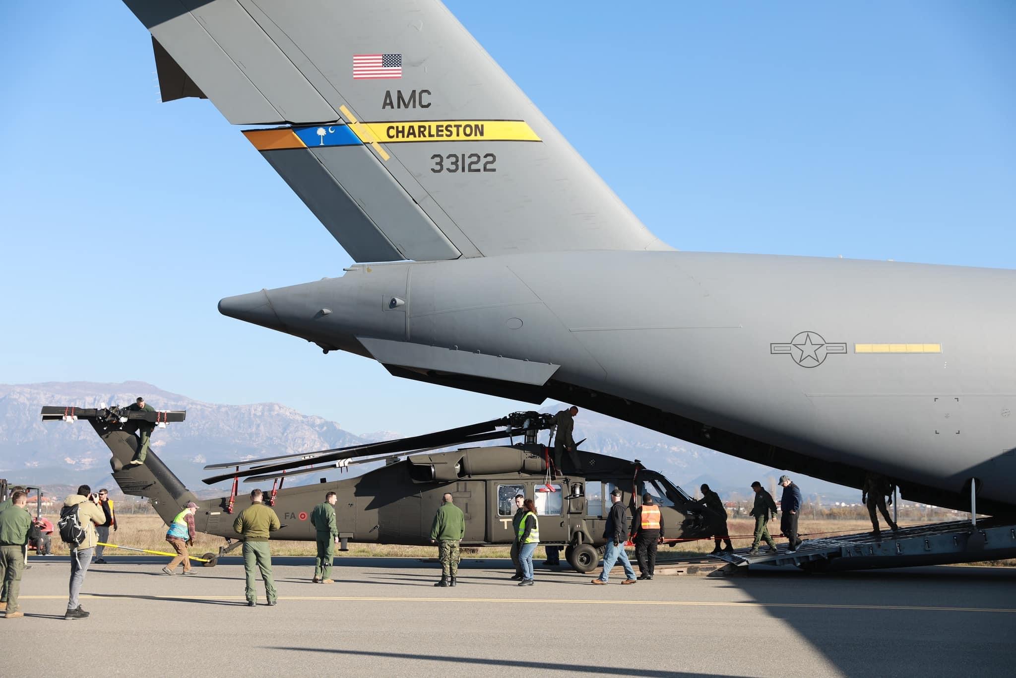 “Mbërritje historike e helikopterëve të parë UH-60 Black Hawk të Shqipërisë. Një avion transportues C-17 i Shteteve të Bashkuara erdhi sot në Tiranë për të dorëzuar porosinë e parë të Shqipërisë për helikopterë Black Hawk, mbështetur me mbi 50 milionë dollarë nga fondet e ndihmës së SHBA. Helikopterët e rinj do të ndihmojnë në forcimin e aftësive të forcave ajrore të Shqipërisë dhe aftësinë për të kryer evakuim mjekësor, rikuperim të personelit, misione kërkim-shpëtimi, si dhe mbështetje të lëvizjeve logjistike të NATO-s për operacione dhe stërvitje. Shtetet e Bashkuara janë krenare për partneritetin e fortë me Shqipërinë në fushën e mbrojtjes”- thuhet në njoftimin e ambasadës së SHBA.