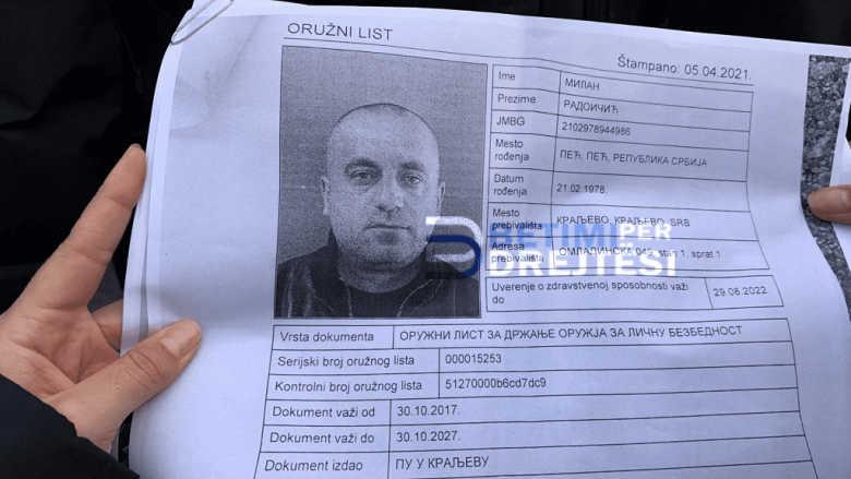 Milan Rajojiçiq rezulton të jetë pajisur nga Policia e Kralevës me leje për përdorimin e gjashtë armëve të llojeve të ndryshme