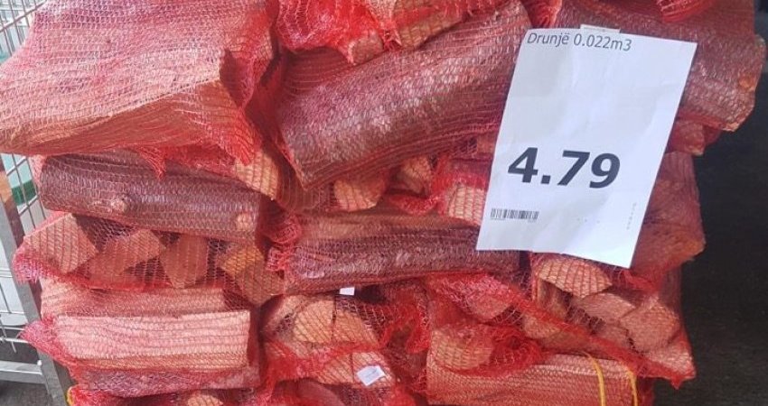 Në etiketën e thesit me katër drurë shkruan se kjo sasi është “0.022 m3 dru”.