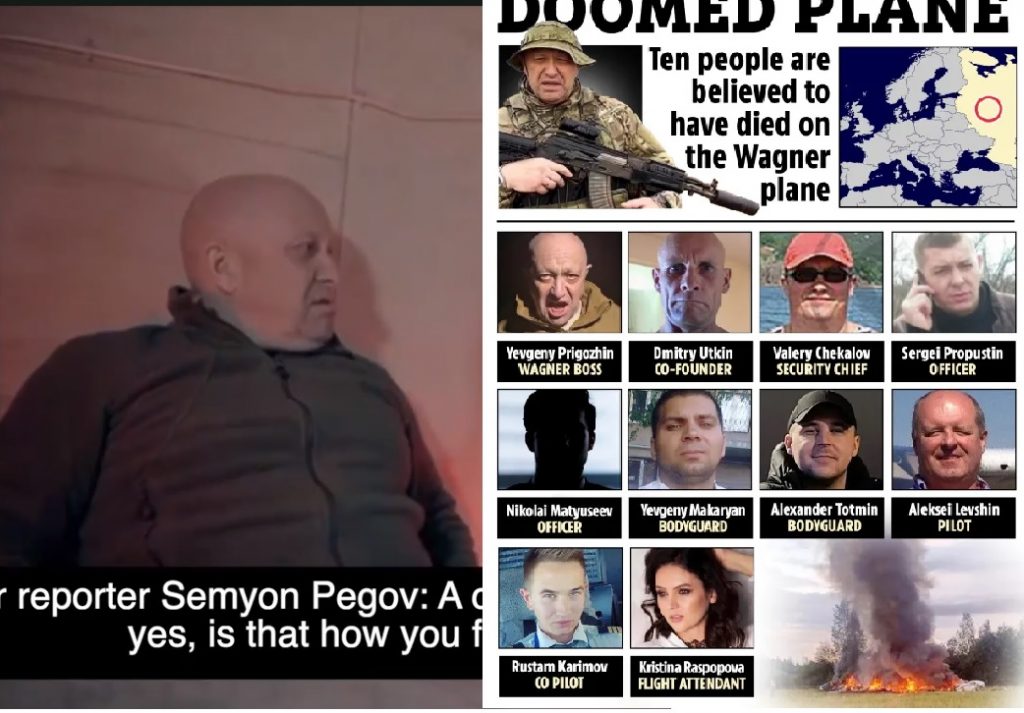 Autoriteti i Aviacionit Civil të Rusisë deklaroi se shefi i mercenarëve me kokë të rruar ishte në mesin e 10 pasagjerëve të një avioni biznesi Embraer Legacy 600, i cili u rrëzua në veri të Moskës. Teoritë e konspiracionit thonë se ai mund të ketë përdorur një sozi për të ndërtuar zhdukjen e tij.