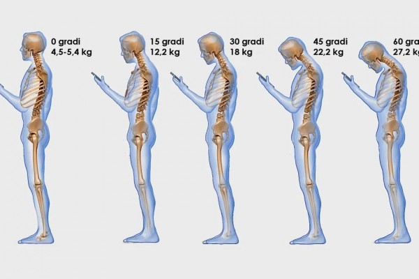 Me kalimin e kohës, ky zakon dikton një qëndrim të përkulur përpara, i cili mund të përfundojë duke dëmtuar shtyllën kurrizore. Pesha e vendosur në qafë varet nga pjerrësia e supozuar e kokës. Një kënd prej 15 gradë është i barabartë me 12 kilogramë dhimbje, 30 gradë 18 kg, 45 gradë 22 kg dhe 60 gradë 27 kg.