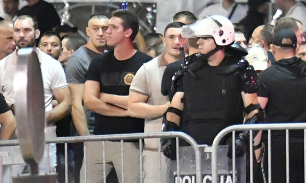 Danilo është vërejtur pranë gardhit që ndan përkrahësit e partisë SNS dhe qytetarët e tjerë, të cilët janë të ndarë nga një kordon policor përpara Kuvendit të Serbisë, raporton Nova