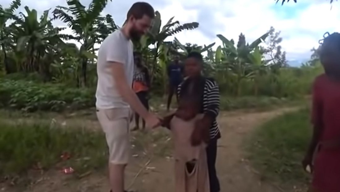 Një vajzë e vogël nga një tribu në Uganda u tmerrua kur pa për herë të parë një njeri të bardhë.