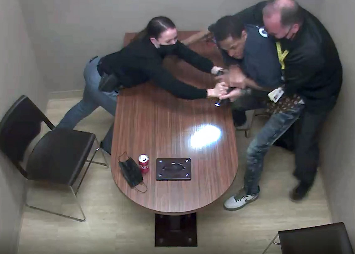 Një vrasës ka vënë në rrezik jetën e dy policëve, pasi gjatë intervistës i ka rrëmbyer armën oficeres së policisë. Kjo skenë e frikshme është filmuar nga kamerat brenda ambienteve ku vrasësi Terrell Rhodes po intervistohej. Në një çast, ai rrëmben armën, por neutralizohet në kohë reale edhe nga policët e tjerë që erdhën në ndihmë të kolegëve të tyre.