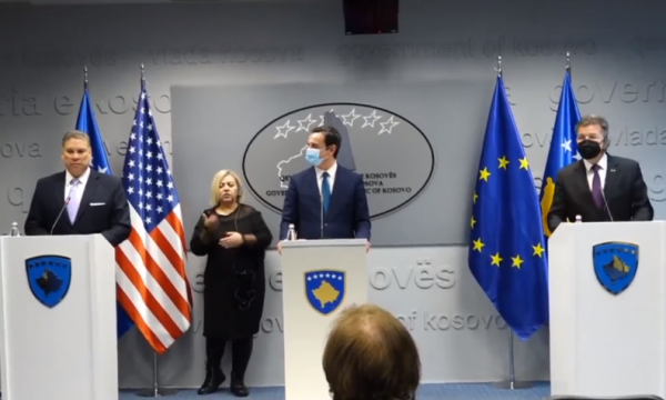 Kryeministri Albin Kurti është shfaqur në një konferencë për media së bashku me përfaqësuesin special të Bashkimit Evropian për dialogun Kosovë – Serbi, Miroslav Lajçak dhe të dërguarin amerikan për Ballkanin, Gabriel Escobar, pas takimit që e patën.