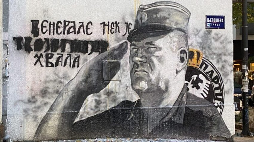 Në kumtesë thuhet se murali o gjeneralit serb të Bosnjës Ratko Mladiç i dënuar për krime lufte në BeH dhe për gjenocidin në Srebrenicë në Gjykatën Ndërkombëtare për krime në ish-jugosllavi dhe personave të ngjashme, gjenden në të gjithë Serbinë.