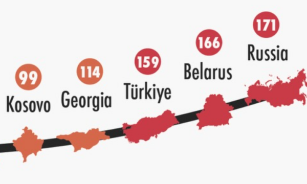 Në kontinent, Kosova renditet e pesta prej fundit për lirinë e medias. Pas saj janë vetëm Gjeorgjia, Turqia, Bjellorusia dhe Rusia.