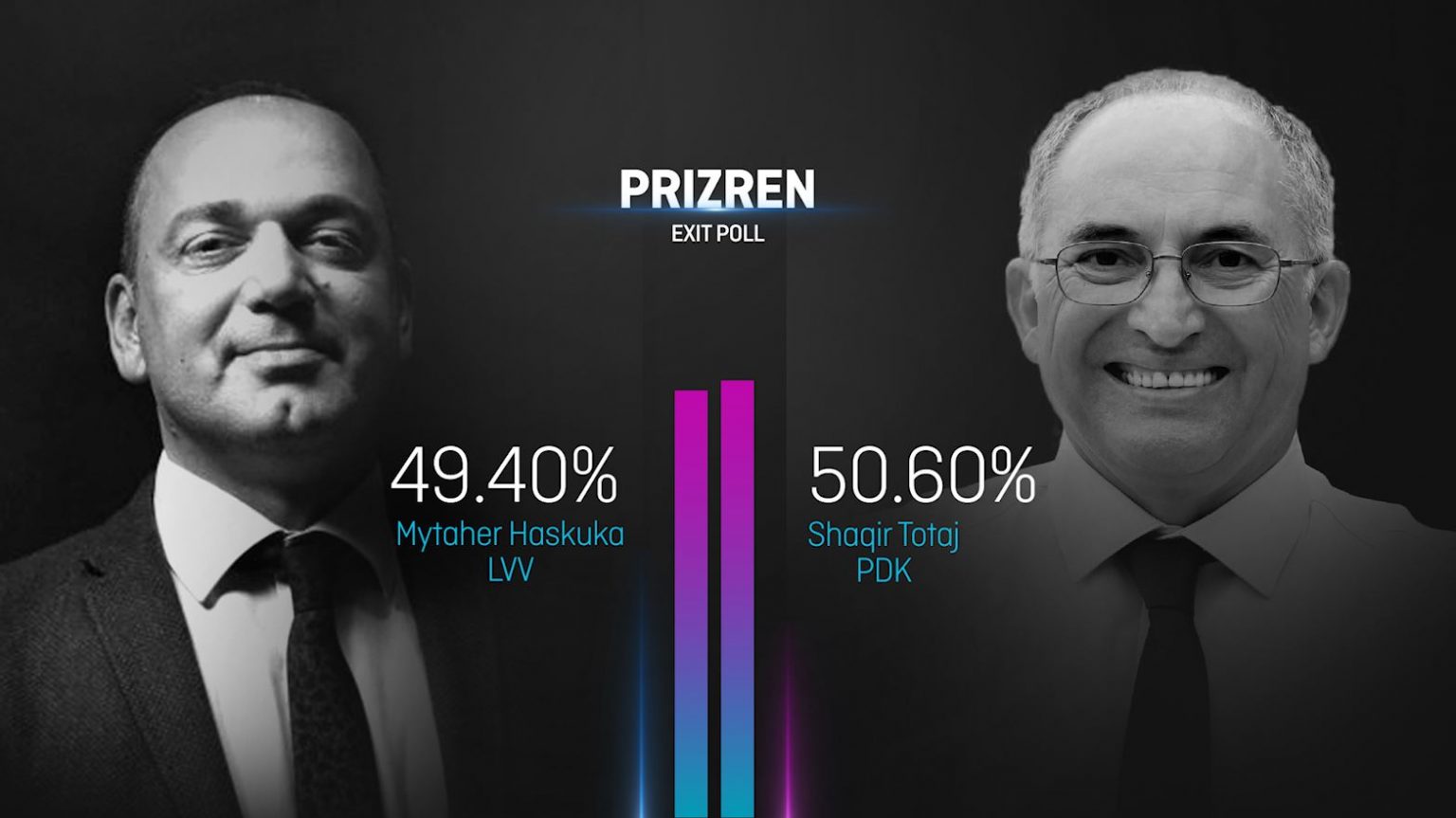 Shaqir Totaj i PDK-së ka fituar Prizrenin me 50.60 përqind, sipas EXIT POLL-it të prezantuar në Klan Kosova.