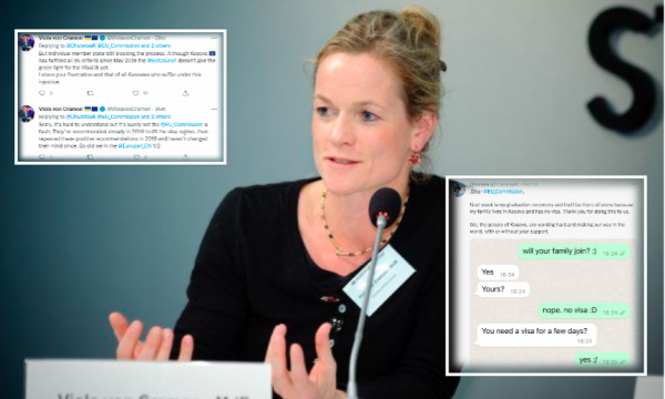 “I dashur@EU_Commission Javën e ardhshme është ceremonia ime e diplomimit dhe do të jem i vetëm sepse familja ime jeton në Kosovë dhe nuk ka vizë. Faleminderit që na e bëtë këtë. Ne, populli i Kosovës, po punojmë shumë dhe po bëjmë rrugën tonë në botë, me ose pa mbështetjen tuaj”, shkroi ajo.