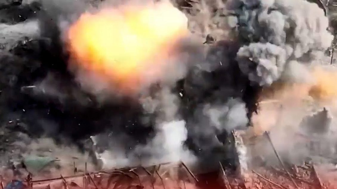 Në pamjet e filmuara nga ajri, shfaqet momenti kur ushtarët rusë hidhen në erë nga artileria që i godet direkt derisa ata po dorëzoheshin.