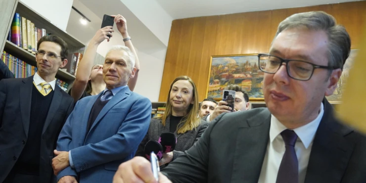 Aleksandër Vuçiç hyn në Shtëpinë Ruse në Beograd. Presidenti serb shtrëngoi duart me ambasadorin Aleksandër Boçan-Karçenko, teksa ky i fundit luajti rolin e një guide turistike, fillimisht duke i dorëzuar kartën e anëtarësisë e deri në prezantimin me librin e përshtypjeve. Vuçiç la një shënim aty duke shkruar se “konfirmon miqësinë tradicionale dhe të fortë mes popullit serb dhe rus”. Ndryshe nga se kërkon Bashkimi Europian dhe Amerika, presidenti serb thotë se do të përforcojë dhe më shumë raportet me Moskën.