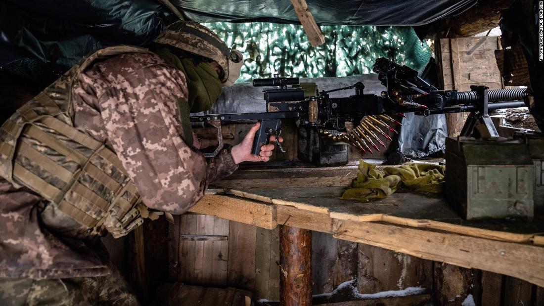A Ukrainian soldier mans a gunner position in a front-line trench on Friday, January 21.Timothy Fadek/Redux for CNN