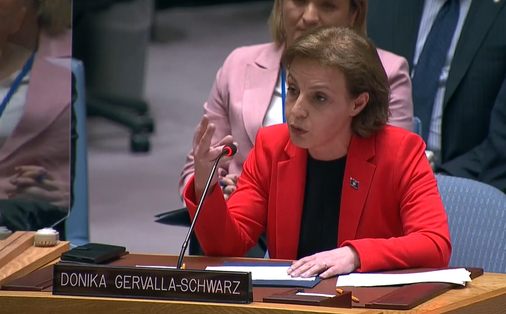Ministrja e Punëve të Jashtme të Kosovës, Donika Gërvalla, në mbledhjen e Këshillin e Sigurimit të Kombeve të Bashkuara për Kosovën, ka thënë se Kosova i rezistoi asgjësimit serb, por sipas saj, “Serbia ka zgjedhur të jetë satelit i Rusisë”.