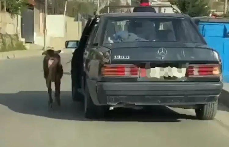 Policia e Shqipërisë e ka ndaluar një person në Tiranë që ishte filmuar teksa e tërhiqte dhinë me veturë.