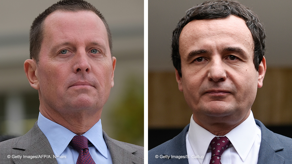 Kombobild | Richard Grenell und Albin Kurti Richard Grenell BERLIN, GERMANY - NOVEMBER 08: U.S. Ambassador to Germany Richard Grenell waits for the arrival of U.S. Secretary of State Mike Pompeo for talks with German Defense Minister Annegret Kramp-Karrenbauer at the Federal Defense Ministry on November 08, 2019 in Berlin, Germany. Pompeo is on a two-day visit to Germany ahead of the 30th anniversary of the fall of the Berlin Wall. (Photo by Sean Gallup/Getty Images) Getty Images/S. Gallup Albin Kurti Leader of the Vetevendosje party and parliamentary elections candidate for Prime Minister, Albin Kurti, looks on after voting, at a polling station in Pristina on October 6, 2019. - Kosovo went to the polls on October 6, 2019 in an election that could usher in new leadership at a time when stalled talks with former war foe Serbia are a source of instability in Europe. (Photo by Armend NIMANI / AFP) (Photo by ARMEND NIMANI/AFP via Getty Images) Getty Images/AFP/A. Nimani