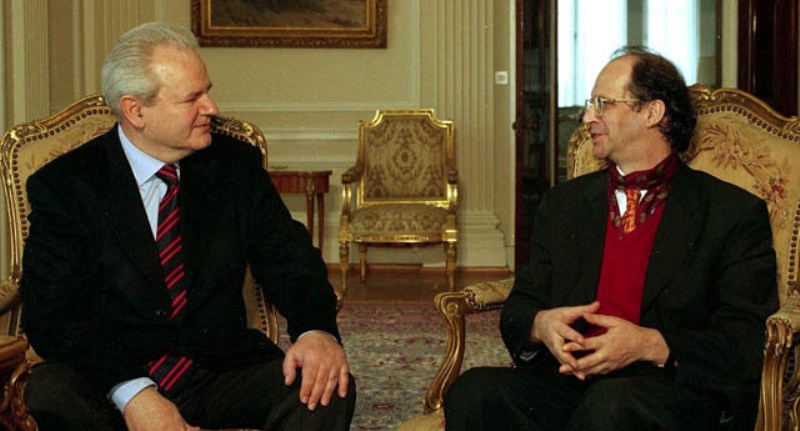 BEL04 - 19990401 - BELGRADE, YUGOSLAVIA: (FILE) File photo of former Yugoslav president Slobodan Milosevic (L) talking with Kosovo Albanian leader Ibrahim Rugova (R) in Belgrade, 01 April, 1999. Rugova clashed Friday 03 May with his nemesis Slobodan Milosevic at the UN war crimes tribunal accusing the former Yugoslav president of massacres against ethic Albanians in Kosovo. EPA PHOTO EPA FILES / STR