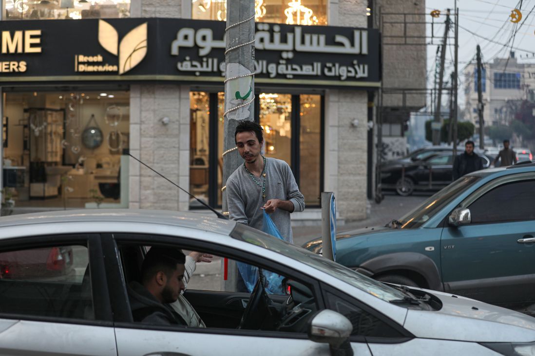 Ihab Ayyad, një i ri i krishterë që jeton në Rripin e bllokuar të Gazës, shpërndan ujë dhe hurma në rrugë çdo mbrëmje për muslimanët agjërues që nuk kanë arritur në shtëpitë e tyre në kohën e iftarit.