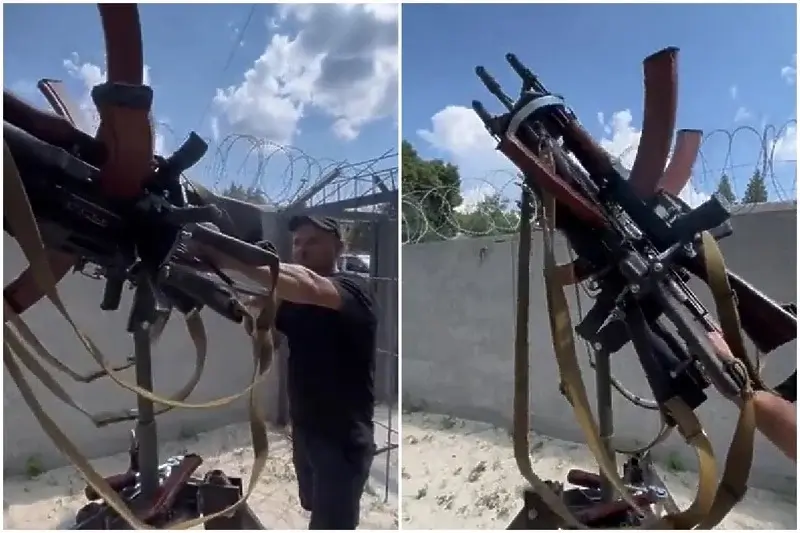 Në një video që u shfaq në rrjetet sociale, mund të shihni një armë të improvizuar të krijuar për të rrëzuar dronët rusë.