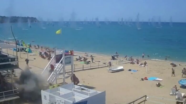 Një video e sulmit raketor në plazhin e Krimesë të mbushur me turistë, është shfaqur në rrjetet sociale.