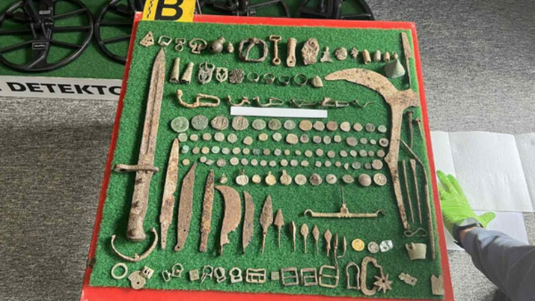 Policia e Kosovës ka arrestuar sot një person në Gjilan dhe ka sekuestruar mbi 200 artefakte arkeologjike, prej të cilave 80 monedha nga periudha e sundimit romak, bizantin dhe mesjetar.
