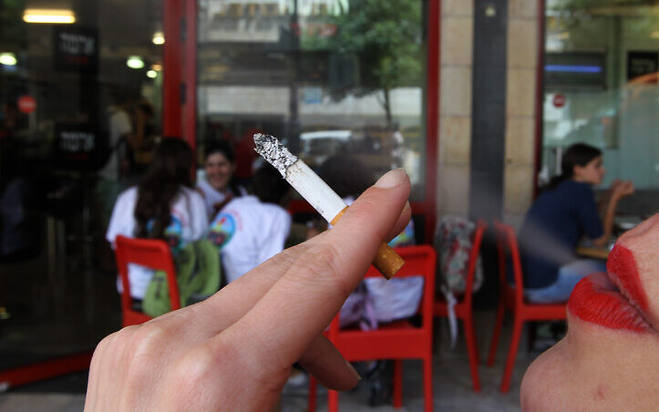 A woman smokes a cigarette, May 30, 2011. Israel moves toward smoking bans in public venues, Prime Minister Benjamin Netanyahu's cabinet approved Sunday a series of amendments and new regulations aimed at stepping up efforts to curb smoking in the country, in honor of the upcoming international no-smoking day Photo by Nati Shohat/Flash90. *** Local Caption *** òéùåï îòùï îòùðú ñéâøéä àéùä ìéôñèé÷ ùôúåï
