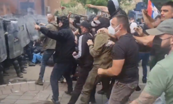 Ushtarë të misionit të KFOR’it janë përplasur të hënën me protestues të dhunshëm serbë, përballë objektit të Komunës së Zveçanit. Si pasojë, disa prej ushtarëve të KFOR’it kanë mbetur të lënduar.