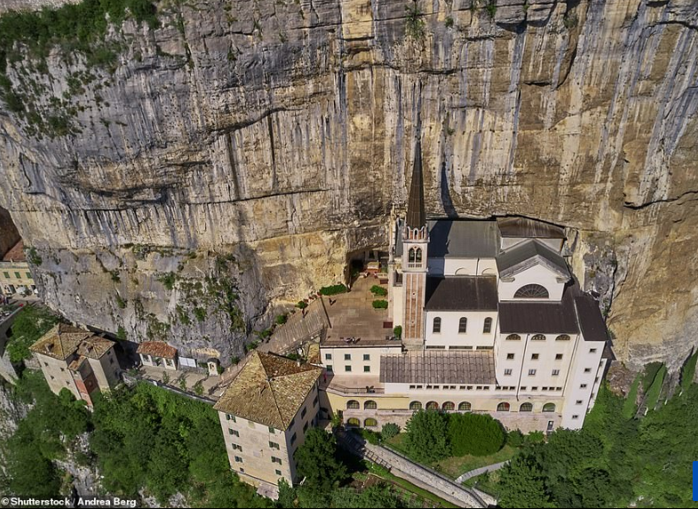 Megjithëse pamjet e saj duken si një fotomontazh, kjo është në fakt një kishë e vërtetë që qëndron në lartësinë 774 metra mbi nivelin e detit, e ndërtuar në faqe të një humnere në veri të Italisë, pa rrugë të dukshme kalimi apo hyrjeje.