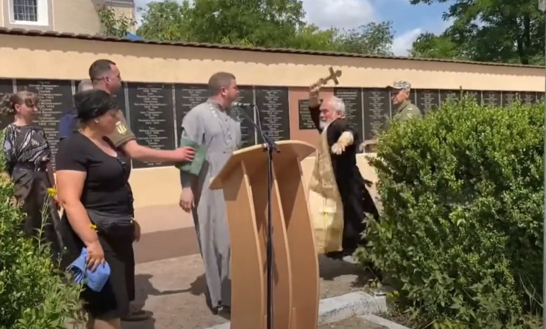 Incidenti ndodhi gjatë lamtumirës së ushtarit të vrarë Oleksandr Zinivy, një vendas nga fshati Yalanets.
