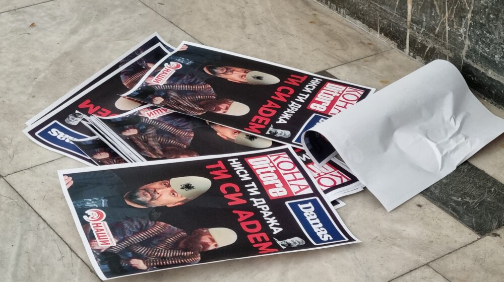 Fletë të tjera të hedhura nga organizata Nasi përfshinin liderët e opozitës me kapelë shqiptare dhe fjalët “opozita e Kurtit” pranë një fotografie të kryeministrit të Kosovës Albin Kurti.