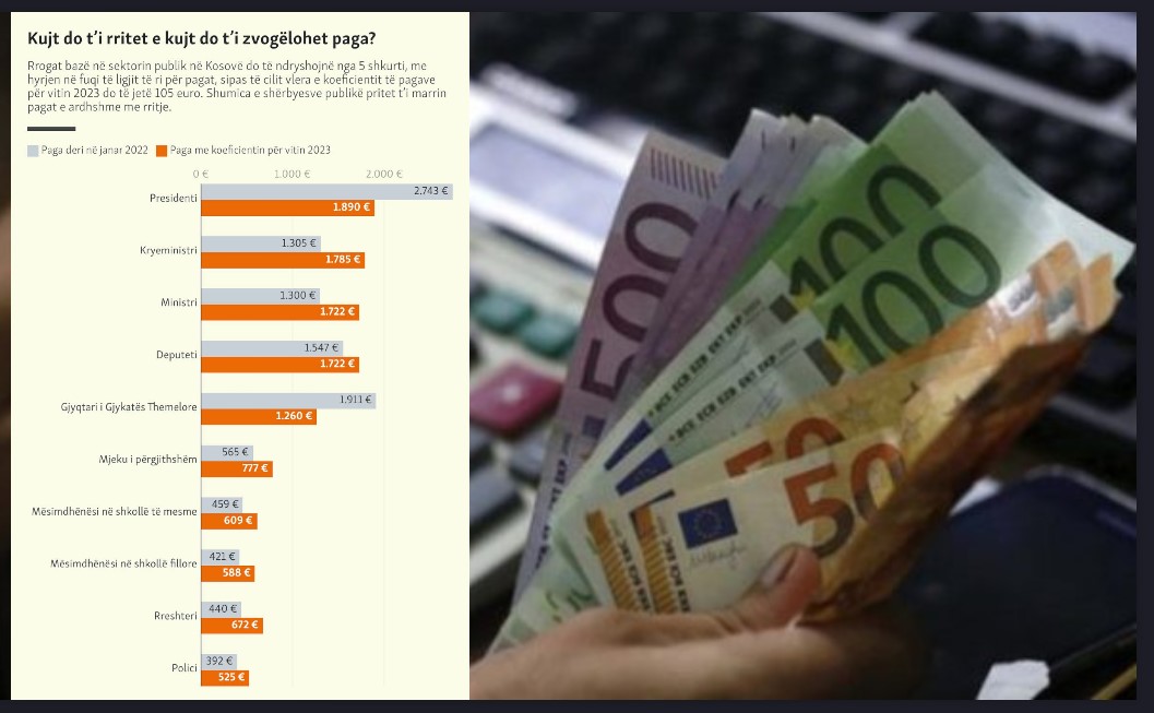 Rrogat bazë në sektorin publik në Kosovë do të ndryshojnë nga 5 shkurti, me hyrjen në fuqi të ligjit të ri për pagat, sipas të cilit vlera e koeficientit të pagave për vitin 2023 do të jetë 105 euro. Shumica e shërbyesve publikë pritet t’i marrin pagat e ardhshme me rritje.