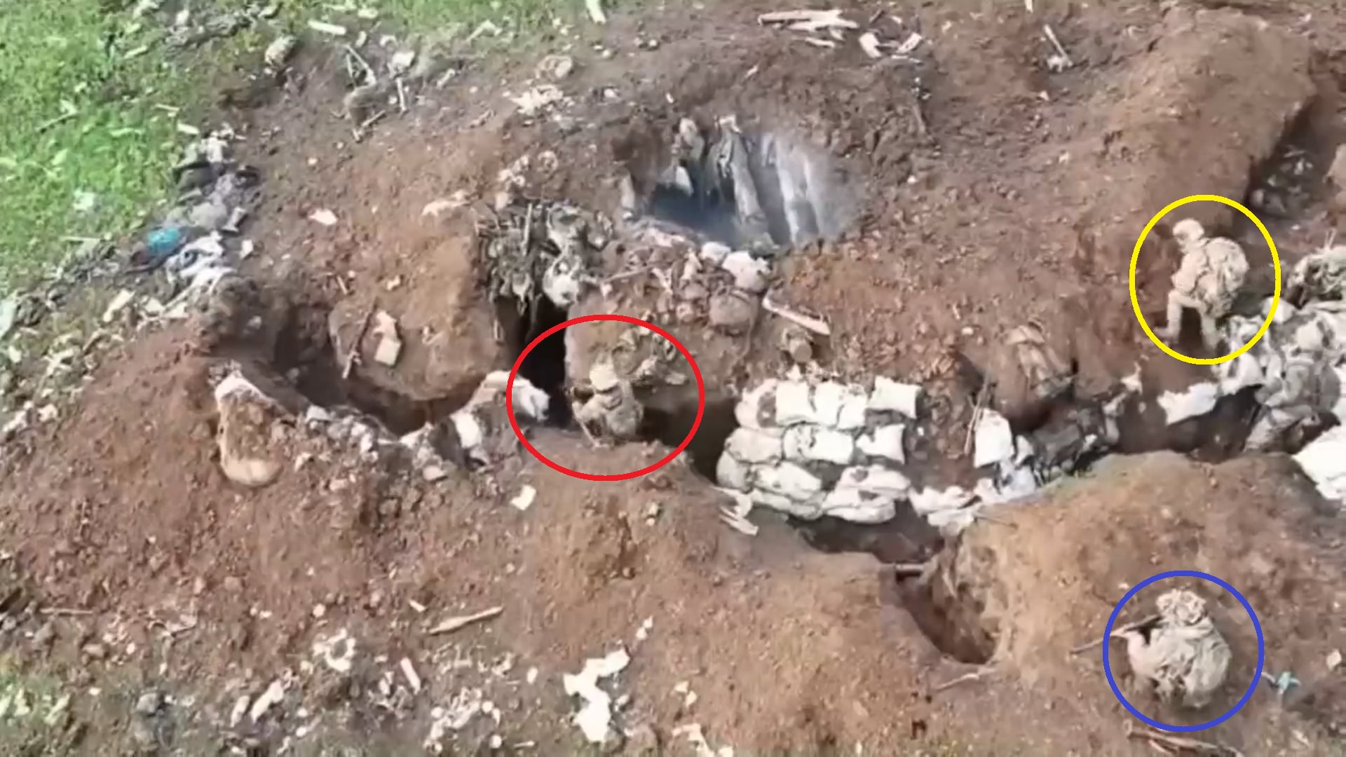 Në pamjet që i ka publikuar blogu Operativno_ZSU, shihen ushtarët ukrainas që hidhnin predha, derisa rusët ishin brenda llogoreve gropave të hapura duke u fshehur.