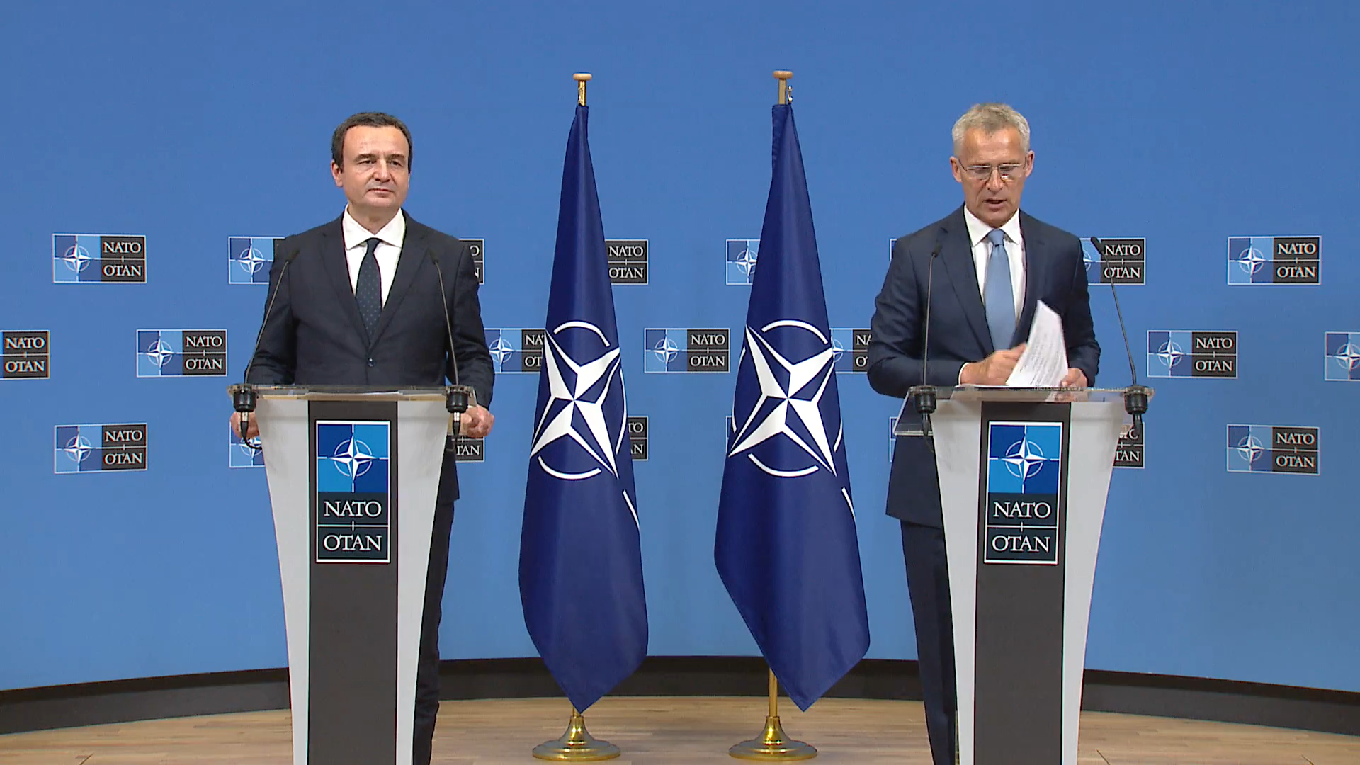 “Kemi një vizion të qartë, ne kërkojmë anëtarësim në NATO dhe kjo do të na mundësojë që të japim atë që vendet anëtare na kanë dhënë ne. Kërcënimet rreziqet dhe sfidat që NATO-ja i përballon sot ndjehen edhe nga vendi jonë. Institucionet kanë arsye të jenë vigjilente ndaj agjendës së dëmshme ruse për Ballkanin dhe Evropën. Qeveria dhe populli i Kosovës e mirëpret besimin dhe përkushtimin tuaj për paqe të qëndrueshme dhe sigurinë”, ka thënë Kurti.