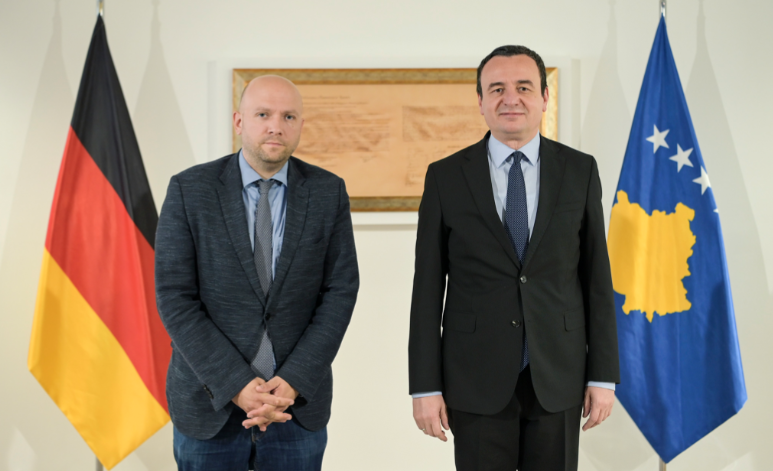Kryeministri i Kosovës, Albin Kurti, i shoqëruar nga zëvendëskryeministri, Besnik Bislimi, mirëpriti sot në takim Përfaqësuesin Special të Gjermanisë për Ballkanin Perëndimor, Manuel Sarrazin.
