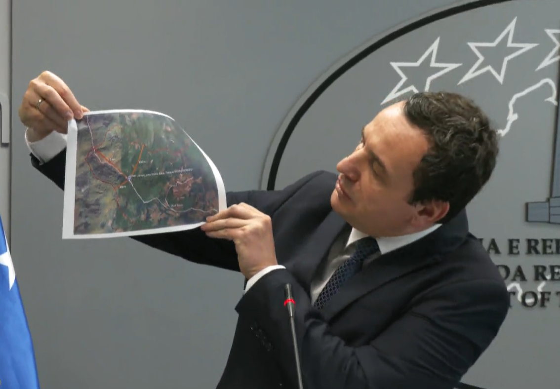 “Mund të shihni se si vendi ku janë kidnapuar tre policët tanë ndodhet 1 km, 300 metra dhe 670 metra larg prej kufirit, në thellësi të territorit të Kosovës”, tha Kurti.