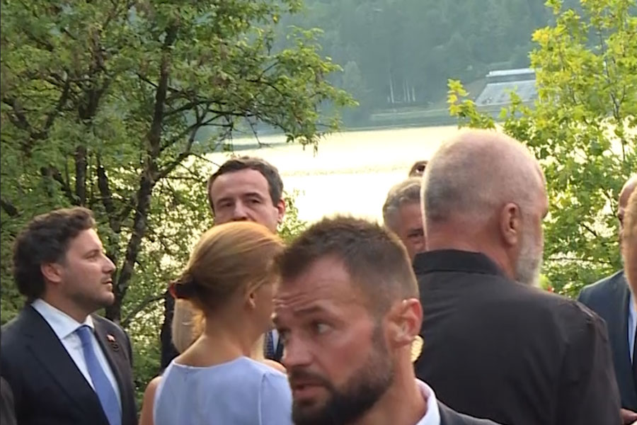 Kurti në darkën e punës së kryeministrit të Sllovenisë, është parë teksa bisedon me kryeministrin e Malit të Zi, Dritan Abazoviq.