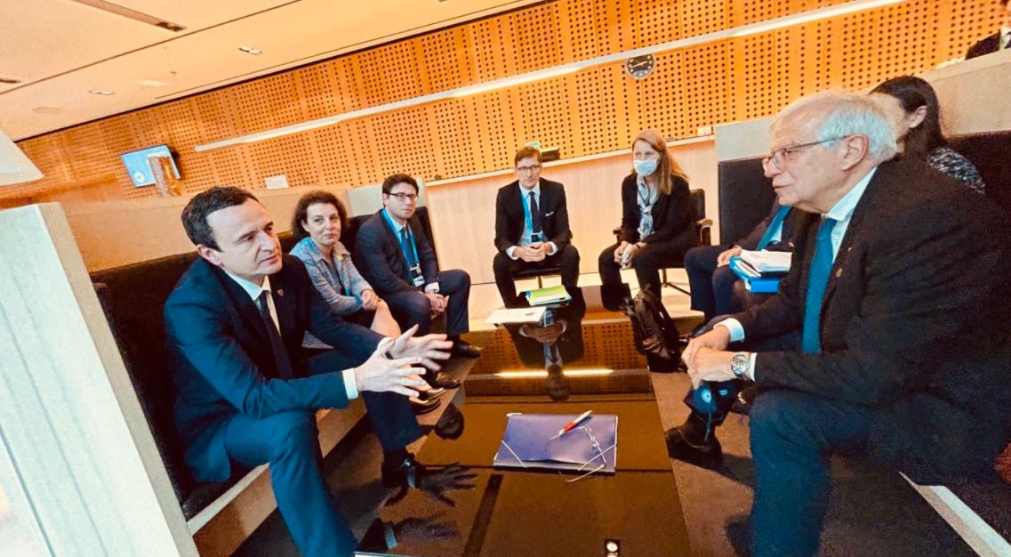 Kryeministri i Kosovës, Albin Kurti, pas sesioneve plenare të Samitit mes vendeve të Ballkanit Perëndimor dhe Bashkimit Evropian, takoi Përfaqësuesin e Lartë të Bashkimit Evropian, Josep Borrell.