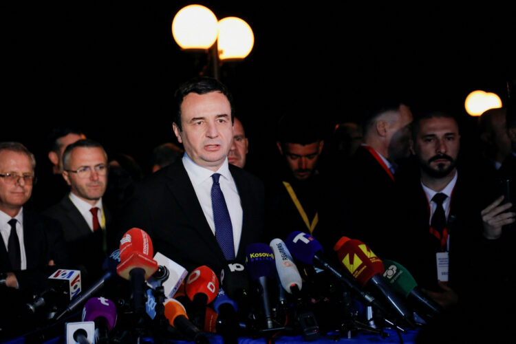 Kosovo's Prime Minister Albin Kurti speaks to the media, in Ohrid, North Macedonia March 18, 2023.REUTERS/Ognen Teofilovski