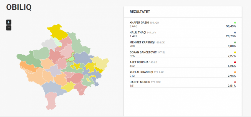 Goran Dancetovic me 7.27 përqind, Ajet Berisha me 6.26 përqind, Xhelal Krasniqi me 2.94 dhe Hanefi Musliu me 2.51 përqind.