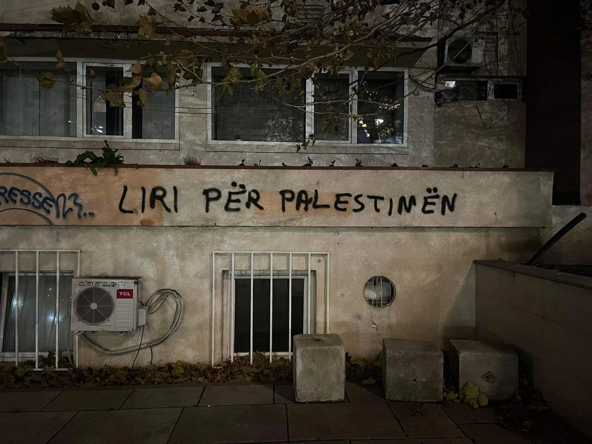 “Liri Palestinës, sot e përherë”, thuhet në njoftimin e atyre që i kanë vendosur këta grafitë.